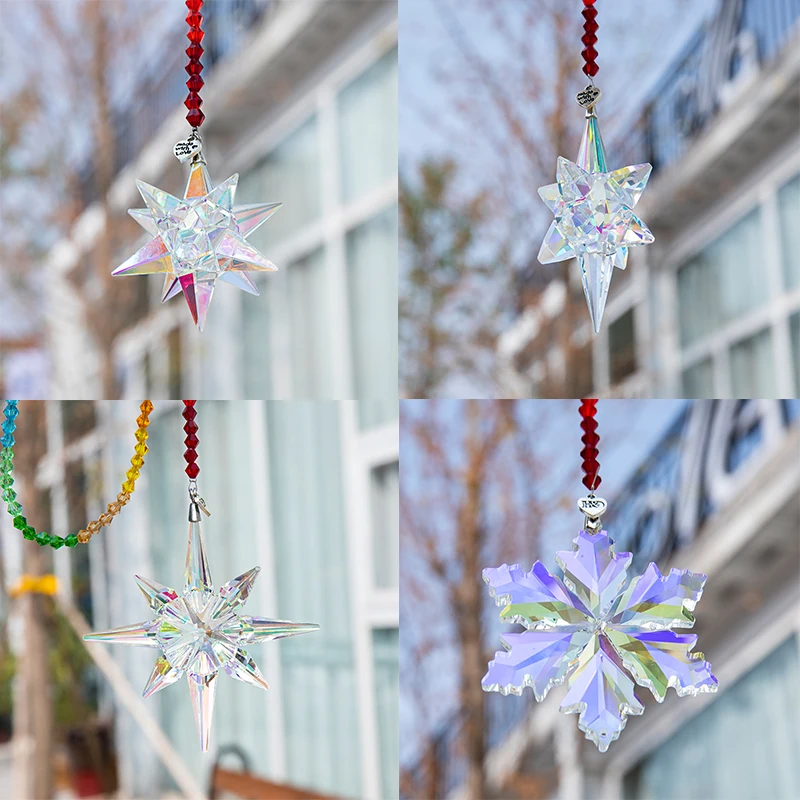 H&D 4 Styles Christmas Crystal Snowflake Decoration Car Rearview Mirror Beauty Charm Pendant Xmas B